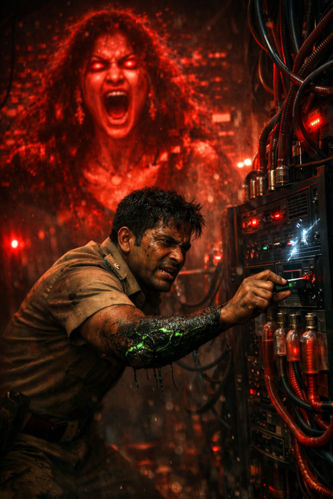 விக்ரமின் இடது கை இப்போது முழுமையாக அந்தச் சர்வர் இயந்திரத்திற்குள் இழுக்கப்பட்டிருந்தது. அவனது நரம்புகள் ஒவ்வொன்றாகத் துண்டிக்கப்படுவது போன்ற வேதனையை அவன் உணர்ந்தான். ஆனால் அந்த வலியையும் தாண்டி, அவனது மூளைக்குள் அந்த மோகினியின் சிரிப்பு ஒரு மின்னலைப் போல வெட்டிக் கொண்டிருந்தது. “பார் விக்ரம்… உன் மரணம் இப்போது ‘லைவ்’ ஆகிக் கொண்டிருக்கிறது. ஒவ்வொரு முறை உன் உடலில் ரத்தம் வெளியேறும்போதும், கியாஜோதி தளத்தின் சந்தாதாரர்கள் பணம் கட்டுகிறார்கள். நீ ஒரு போலீஸ் அதிகாரி மட்டுமல்ல, நீ இப்போது ஒரு லாபகரமான கன்டென்ட் (Content)!”