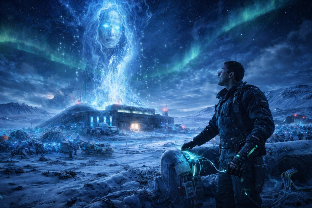விக்ரம் தன் புதிய செயற்கைக் கையை உயர்த்திப் பார்த்தார். அதன் ‘தெர்மல் சென்சார்கள்’ (Thermal Sensors) அந்தப் பனிமலையின் அடியில் ஒரு பெரிய வெப்ப ஆதாரத்தைக் காட்டின. “அஜய், அங்கே பார்! அந்த எரிமலைக் குழாய் (Volcanic Vent) வழியாகத்தான் சர்வர்கள் குளிர்விக்கப்படுகின்றன. அங்கேதான் அந்தப் பதுங்கு குழி (Bunker) இருக்கிறது!”
